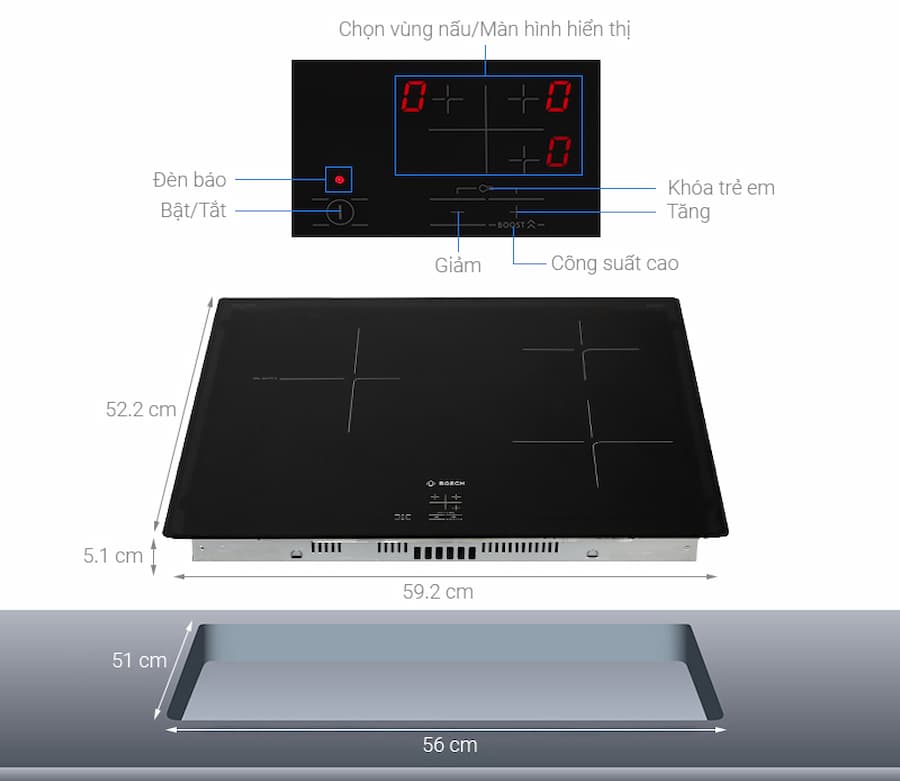 Đây là những thông số kỹ thuật cơ bản và quan trọng nhất của Bếp từ Bosch PUC61KAA5E, giúp bạn hiểu rõ hơn về sản phẩm trước khi quyết định mua.