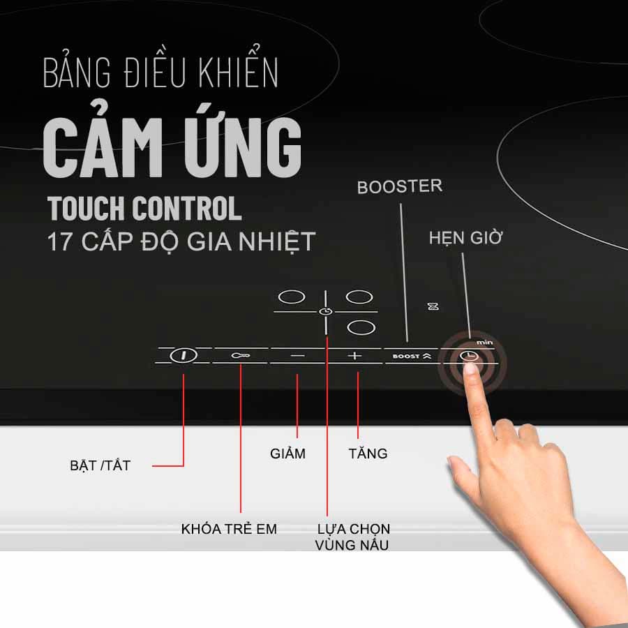 Điều khiển Direct Select/Touch Select: Bảng điều khiển cảm ứng trực quan, cho phép bạn dễ dàng lựa chọn 17 mức gia nhiệt chỉ bằng một chạm.