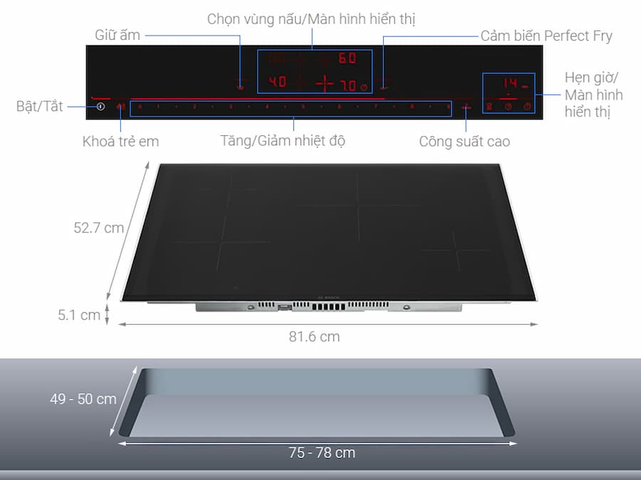 Chức năng quản lý công suất (Power Management): Cho phép người dùng giới hạn tổng công suất sử dụng của bếp, tránh quá tải cho hệ thống điện gia đình.