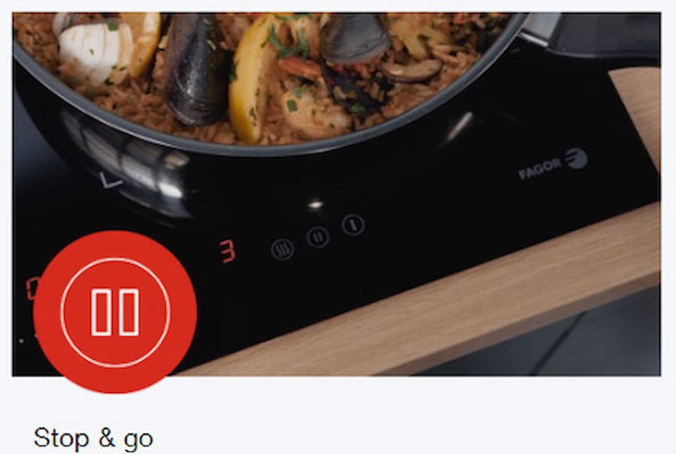Không cần gắn chặt với căn bếp của bạn trong khi nấu nướng, giờ đây bạn có thể chủ động thời gian hơn khi có bếp từ Fagor 3IF-72C1S chính hãng. Với chức năng tạm dừng trên thiết bị, bạn có thể ngay lập tức ngưng quá trình nấu hiện tại để làm việc khác, sau đó quay trở lại và tiếp tục hoàn thiện nốt món ăn dang dở.