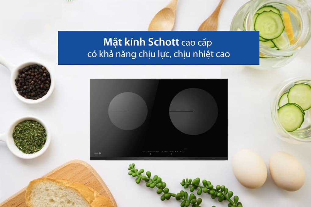 Ngoài ra, sản phẩm còn sở hữu một mặt bếp – bộ phận quan trọng không thể thiếu ở một bếp từ âm tủ. Nói không với những kim loại nặng có hại trong việc sản xuất và chế tạo, mặt bếp được sử dụng chất liệu kính Schott cao cấp với lượng nhiệt và lực có thể chịu ở mức cao, thân thiện cho cả người dùng và môi trường.