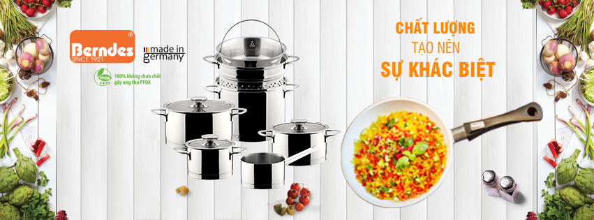 Berndes là thương hiệu đồ gia dụng cao cấp được thành lập năm 1921 tại Sauerland của Đức. Trong hơn 94 năm hoạt động và phát triển, Berndes luôn không ngừng nghiên cứu và phát triển công nghệ lớp phủ chống dính để cho ra các sản phẩm nồi, chảo cao cấp có chất lương tốt nhất an toàn với sức khỏe người tiêu dùng. Năm 1921: Berndes được thành lập bởi Heinrich Berndes. Năm 1920: Berndes ra mắt các sản phẩm chống dính đầu tiên Năm 1975: Berndes tạo nên một cuộc cách mạng trong thị trường đồ làm bếp với chảo làm từ hợp kim nhôm phủ lớp chống dính cao cấp – chảo BONANZA. Năm 2009: Berndes được cấp bằng sáng chế đối với công nghệ cảm ứng cho các sản phẩm nhôm đúc. Năm 2010: Xây dựng nhà máy chính thức ở Đức với công nghệ lớp phủ gốm. Năm 2012, Berndes trở thành thành viên của tập đoàn Alluflon Spa, nhà sản xuất đồ gia dụng nổi tiếng toàn cầu từ khi thành lập năm 1970. Các sản phẩm của Berndes được phủ sóng khắp các nước trên thế giới không chỉ ở các nước phương tây: Thụy Sỹ, Bỉ, Singapore, Đài loa, Hồng Kong, Malaysia, Macao, Thái Lan, Anh, Hà Lan, Hoa Kỳ …. Hiện nay Berndes có 22 nhà phân phối độc quyền tại 16 quốc gia trên toàn thế giới trong đó Berndes Anh, Berndes Mỹ, Berndes Hồng Kong, Berndes Malaysia, Berndes Nga, Berndes Singapore…và Berndes tại Việt Nam.