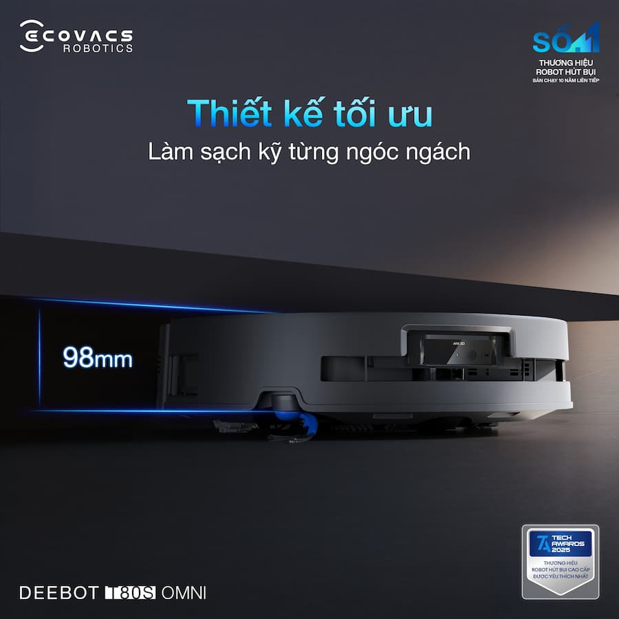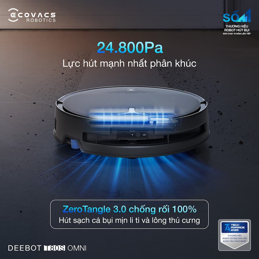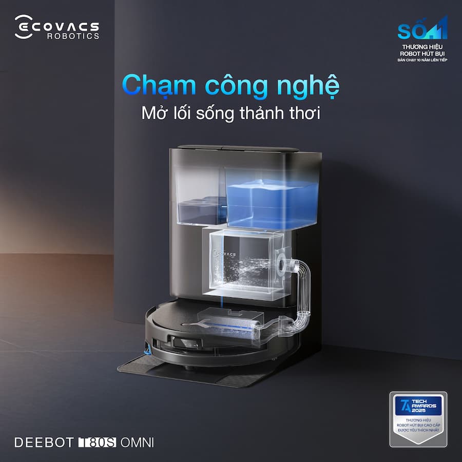 Dọn nhà không còn là việc phải “để dành cuối tuần”. DEEBOT T80S OMNI giúp bạn làm sạch nhanh - gọn - nhàn hơn với loạt công nghệ thông minh: Xử lý cả vết bẩn khô & ướt Công nghệ nâng 3 cấp độ tự điều chỉnh theo từng bề mặt, làm sạch tối ưu mà vẫn bảo vệ thảm và thiết bị. Cuốn sạch lông tóc, hạn chế rối mắc Công nghệ chống rối ZeroTangle™ 3.0 giảm tối đa tình trạng tóc quấn vào chổi, duy trì lực hút ổn định. Lau sát mép cạnh Cảm biến con lăn vươn sát tường đến 1.5cm giúp xử lý bụi bẩn ở góc cạnh hiệu quả hơn. 👉 Không chỉ dọn sạch, mà còn giúp bạn rảnh tay mỗi ngày. Khám phá DEEBOT T80S OMNI ngay hôm nay để nâng cấp trải nghiệm làm sạch tại nhà!