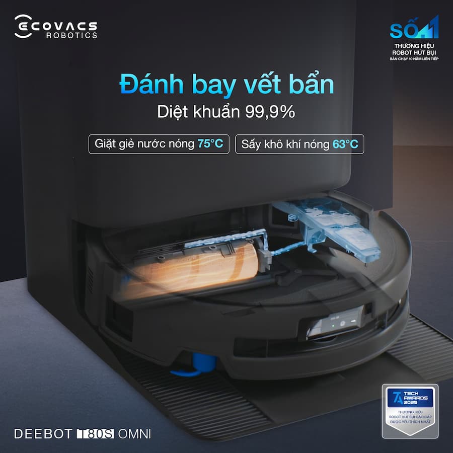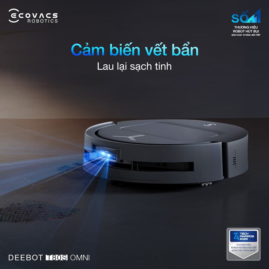 Nếu bạn đang tìm kiếm một chiếc robot mà bạn có thể "quên luôn việc dọn dẹp" vì nó quá tự lập và thông minh trong việc tránh đồ vật, thì T80S Omni chính là câu trả lời. Robot hút bụi lau nhà Ecovacs DEEBOT T80S OMNI - Nâng chuẩn làm sạch toàn diện, tối ưu từng chuyển động lau dọn. Sở hữu con lăn lau thế hệ mới cùng loạt công nghệ thông minh, giúp việc dọn nhà trở nên nhẹ nhàng hơn bao giờ hết: OZMO Roller 2.0: Con lăn lau sạch sâu, hạn chế bám bẩn, giữ sàn luôn khô ráo. AI Stain Detection 2.0: Tự động nhận diện vết bẩn cứng đầu và lau lại thông minh. AIVI 3D 3.0 Omni-Approach: Điều hướng linh hoạt, tối ưu đường đi để làm sạch kỹ lưỡng mà vẫn tiết kiệm thời gian. 👉 Và còn nhiều tính năng đáng giá đang chờ bạn khám phá. Sở hữu DEEBOT T80S OMNI ngay hôm nay để trải nghiệm chuẩn sạch mới!
