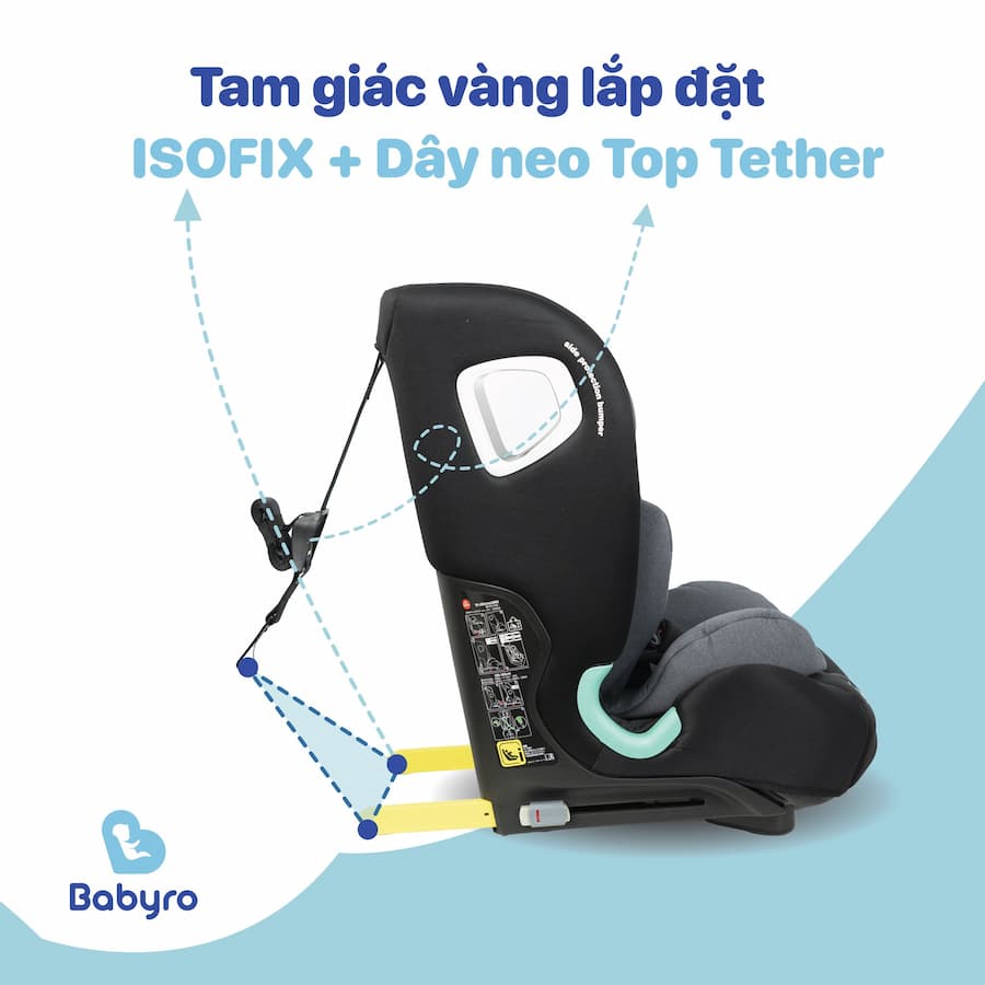 Sự kết hợp giữa ISOFIX và Top Tether (dây neo phía sau) tạo nên một hệ thống cố định 3 điểm cực kỳ vững chãi: