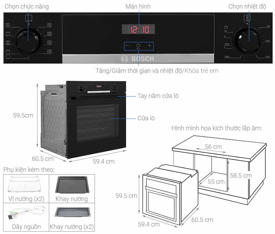 Thông số kỹ thuật cơ bản Lò nướng âm Bosch HBS534BB0B