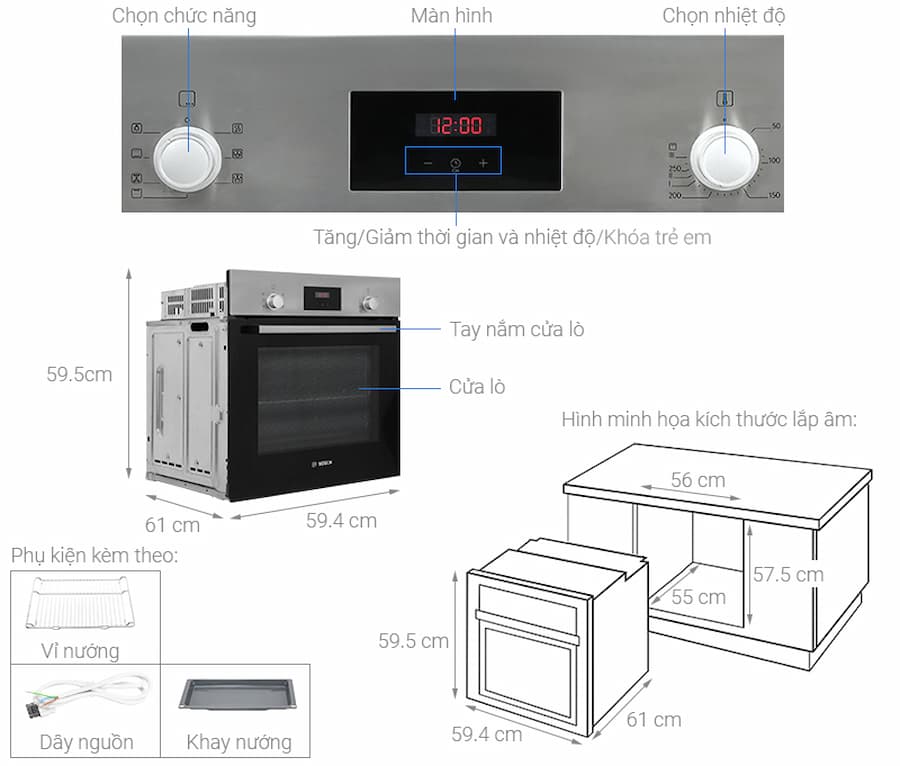 Thông số kỹ thuật cơ bản Lò nướng BOSCH HBF113BR0A|Serie 2