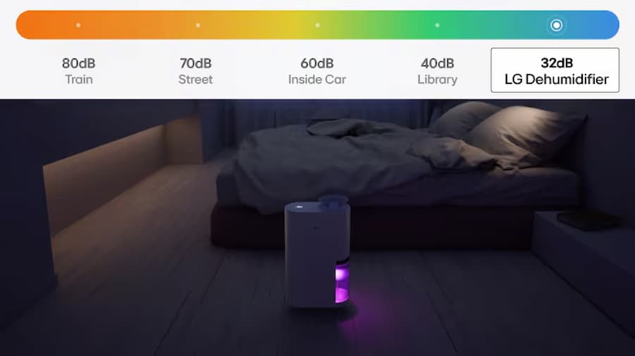 Vận hành êm ái: Máy hút ẩm LG DD20GMWE2 hoạt động với độ ồn thấp (chế độ Im lặng có thể xuống đến khoảng 34dB), giúp bạn có giấc ngủ thoải mái mà không bị làm phiền.