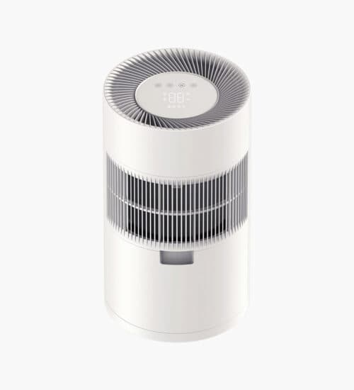 Máy có thiết kế dạng trụ tròn hiện đại, nhỏ gọn hơn nhiều mẫu máy hút ẩm truyền thống.