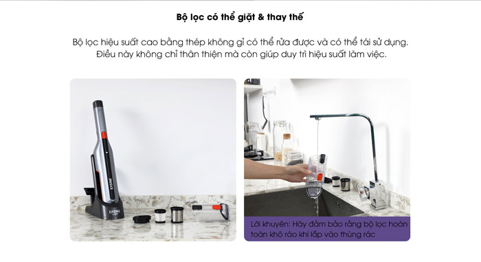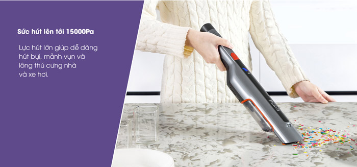 Thùng rác trên máy có kích thước khoảng 400ml, đây là thùng đựng rác có đủ tiêu chí để không làm bụi bay ra ngoài, ngoài việc trang bị thùng đựng rác thì việc trang bị màng lọc ngăn cản bụi cũng là một bộ phận quan trọng. Đây là mẫu máy hút bụi cầm tay có thể duy trì hoạt động trong thời gian ngắn nhưng lại sở hữu một hệ thống bảo đảm trải nghiệm rất tốt.