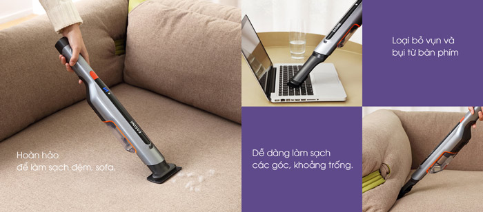 Đối với những chiếc máy hút bụi cầm tay, để có thể có một hiệu năng tốt, thì thiết kế của máy phải được hỗ trợ tối đa, đây cũng là một trong những lựa chọn tối ưu cho người dùng để vệ sinh các khu vực bụi bẩn trên cao hoặc nơi có không gian nhỏ, khó có thể mang các dòng máy hút bụi gia đình cồng kềnh để sử dụng. Chiếc máy hút bụi cầm tay với cơ chế hút thông qua hệ thống động cơ, hút rác qua cổng hút, kích thước của máy thì nhỏ gọn, dễ dàng cầm nắm, di chuyển. Thùng chứa rác được thiết kế nhỏ gọn gắn liền cùng với thân máy, giữ cố định bằng chốt.
