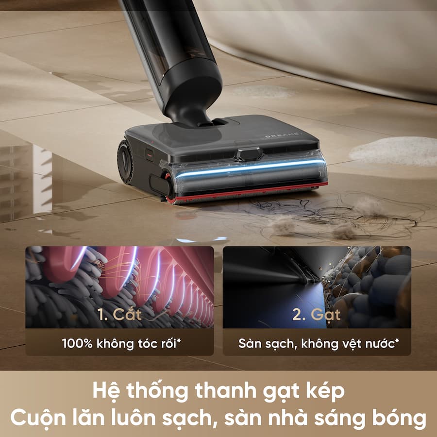 Máy hút bụi khô và ướt Dreame H16 Steam là bước tiến đột phá trong công nghệ làm sạch hiện đại. Với khả năng kết hợp lực hút mạnh mẽ 28.000Pa và công nghệ hơi nước nhiệt độ cao 200°C SaunaClean™, sản phẩm mang đến hiệu quả vệ sinh vượt trội, xử lý triệt để cả bụi khô lẫn vết bẩn ướt cứng đầu. Dreame tái định nghĩa tiêu chuẩn sạch sâu với đột phá Công nghệ GapFree™ AI DescendReach: Hệ thống cảm biến thông minh tự động hạ thấp và vươn dài đầu chải, tiếp cận trực diện các khe hở và điểm tiếp giáp giữa máy và vách tường, loại bỏ hoàn toàn mảnh vụn và vệt nước tại điểm mù mà các thiết bị thông thường không thể chạm tới. Dưới đây là 5 ưu điểm nổi bật nhất giúp dòng máy này vượt trội so với các đối thủ trong phân khúc máy hút bụi lau sàn: