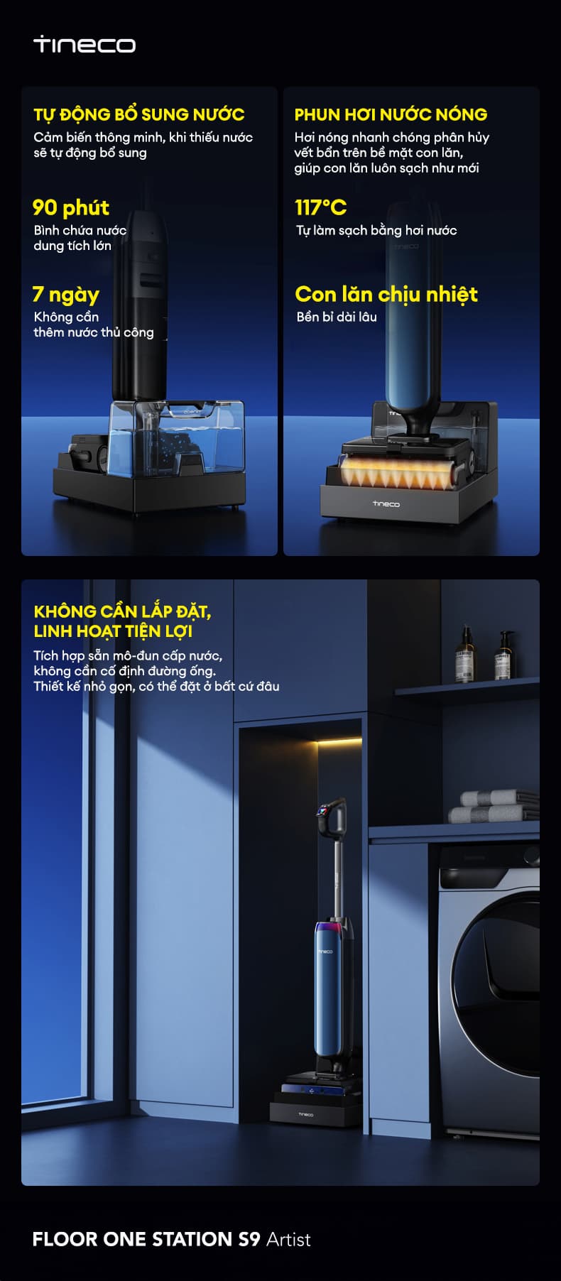 3. Tineco STATION S9 Artist với Công nghệ sấy yên tĩnh SilentDry & FlashDry 85°C