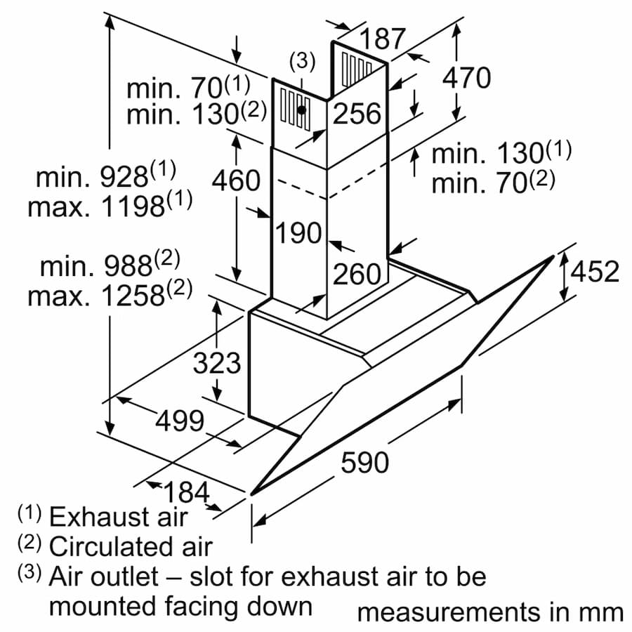 Dạng hút thải: 928-1198 x 590 x 499 mm