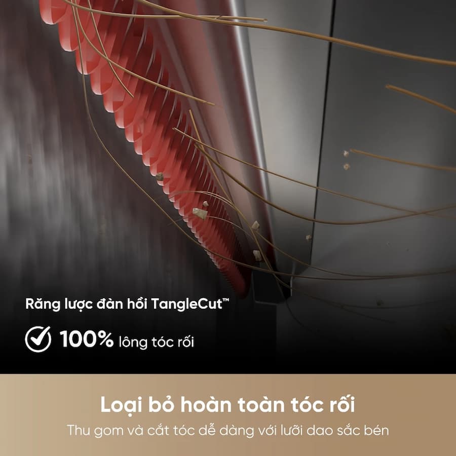 Công nghệ TangleCut™ (răng lược đàn hồi): Tính năng này giúp cắt gọn tóc rối bám vào chổi lăn, giảm thiểu việc phải gỡ tóc thủ công.