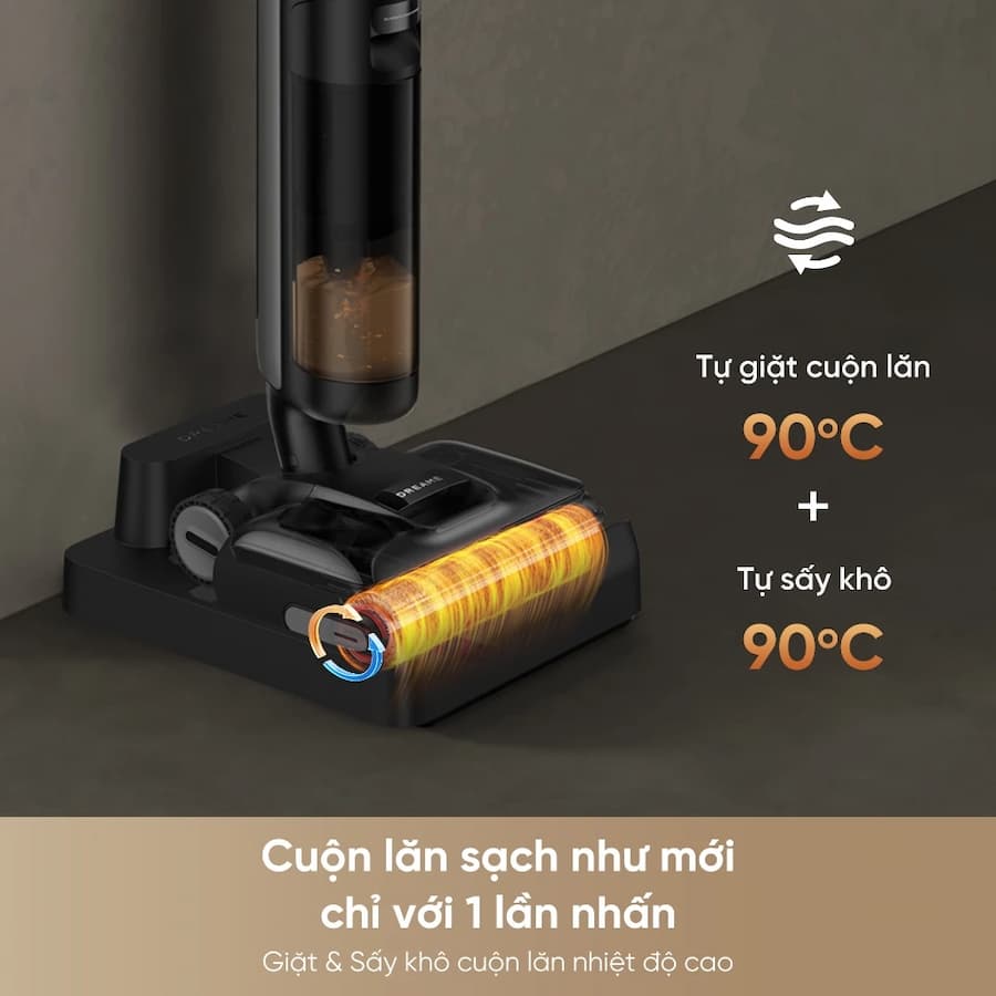 Tự động giặt và sấy khô chổi lăn: Sau khi hoàn thành việc dọn dẹp, máy có khả năng tự động giặt sạch cuộn lăn và sấy khô bằng khí nóng 90°C tại trạm sạc. Điều này giúp ngăn ngừa vi khuẩn và mùi hôi phát triển, đồng thời giữ cho chổi lăn luôn sạch sẽ, sẵn sàng cho lần sử dụng tiếp theo.