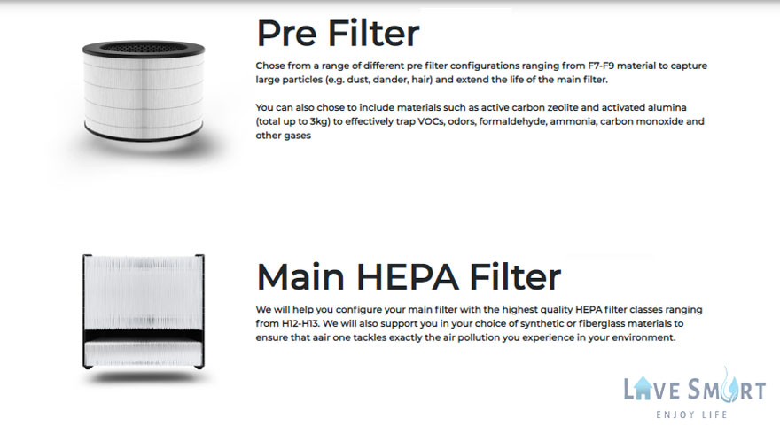 Không chỉ tùy chỉnh về thiết kế, bộ lọc của máy lọc không khí Aeris Aair One còn được điều chỉnh thích nghi với từng nhu cầu và mong muốn của mỗi cá nhân, mỗi khách hàng. Chính vì vậy mà máy lọc không khí Aair One trở nên tối ưu hóa hơn cho từng nhiệm vụ cụ thể.
