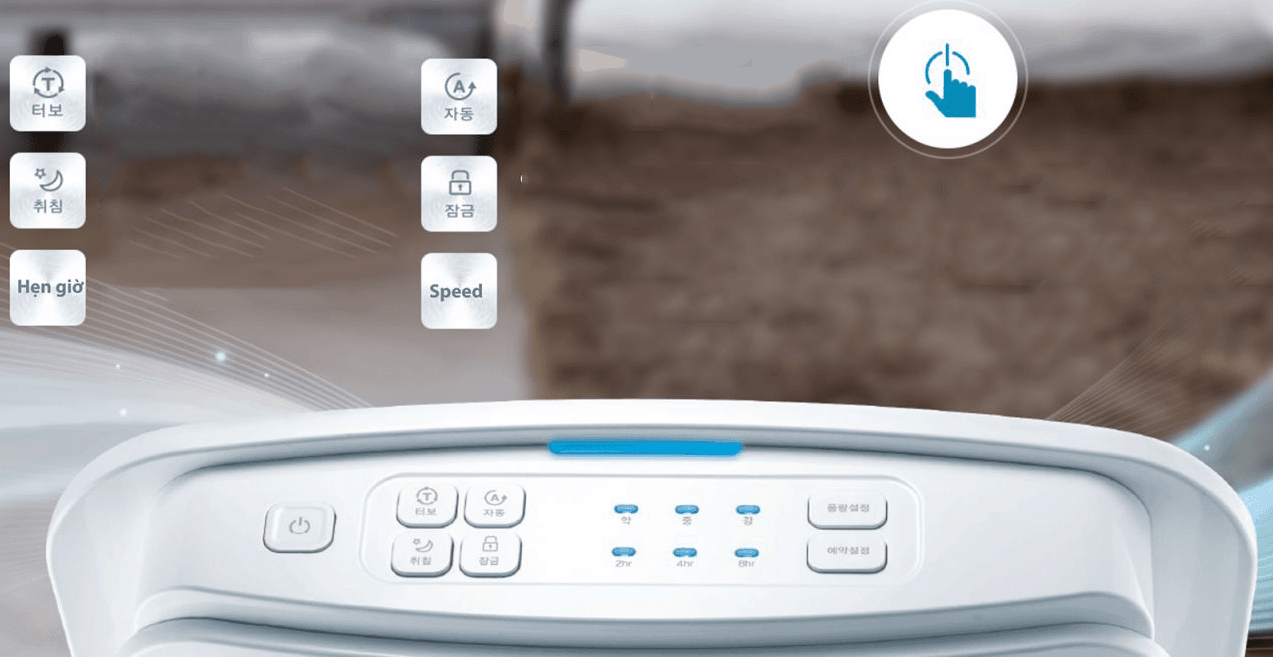 Turbo: Nếu ô nhiễm không khí nghiêm trọng, nhấn nút Turbo, máy sẽ nhanh chóng cải thiện không khí trong phòng ở tốc độ nhanh nhất