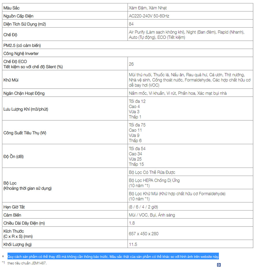 Thông số kĩ thuật của Hitachi EP-PF120JCảm ơn quý khách đã quam tâm sản phẩm máy lọc không khí Hitachi EP-PF120J của chúng tôi !
