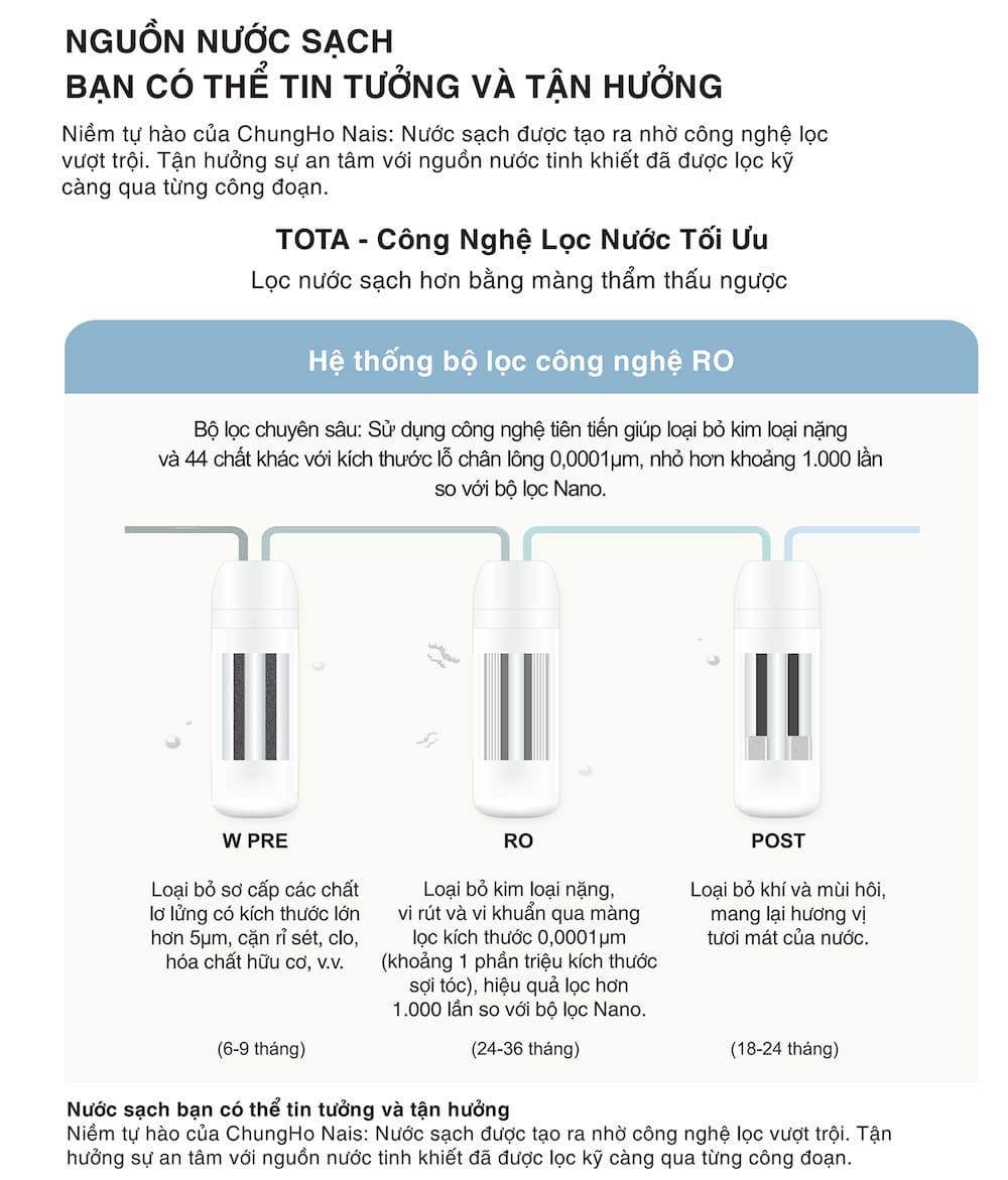 Ưu điểm Máy lọc nước Chungho TOTA: