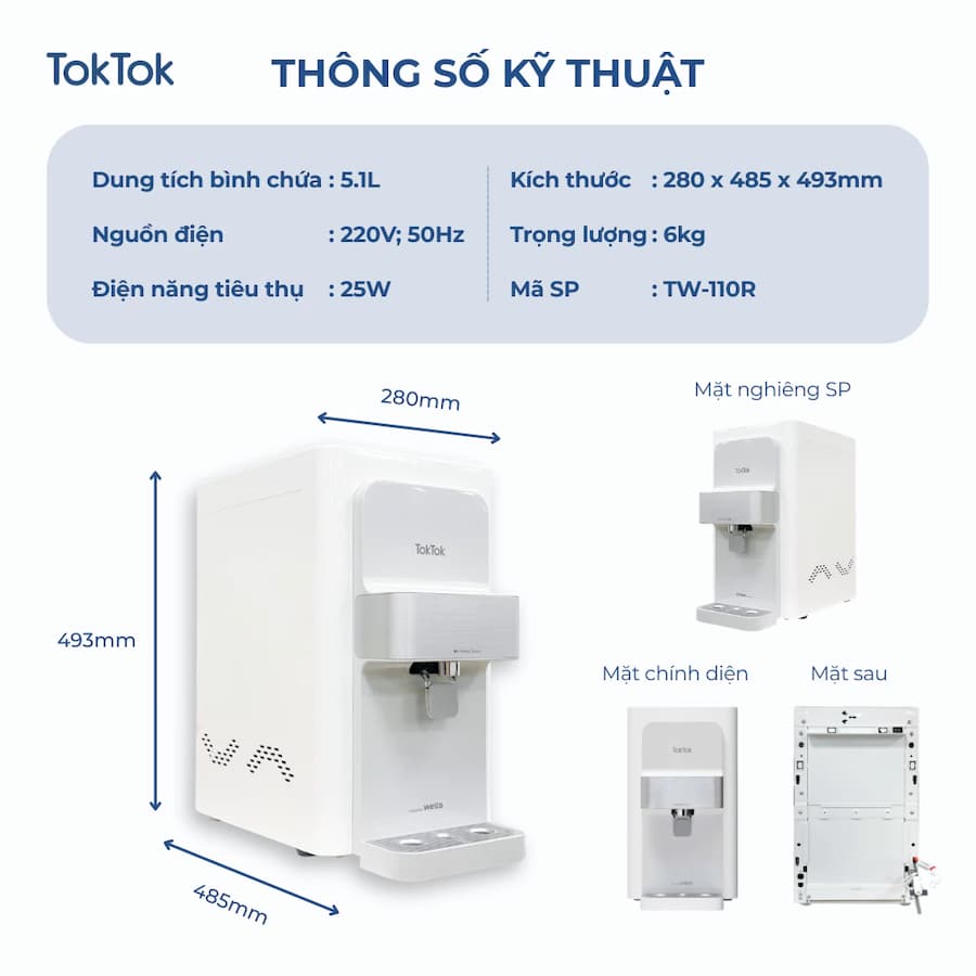 Thông số kỹ thuật Máy lọc nước TokTok TW-110