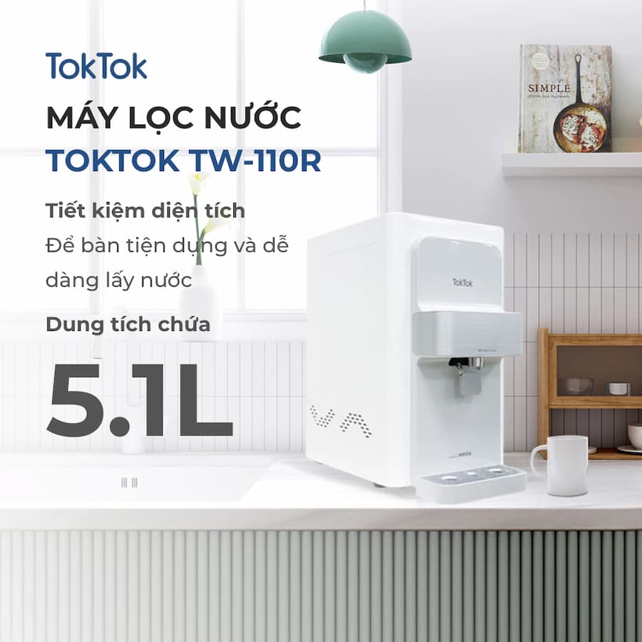 Máy lọc nước TokTok TW-110 là giải pháp cung cấp nước sạch tinh khiết lý tưởng cho gia đình ít người, căn hộ chung cư hoặc văn phòng làm việc. Với triết lý thiết kế tối giản nhưng hiệu quả tối đa, sản phẩm hội tụ những công nghệ lọc nước hàng đầu từ "xứ sở Kim Chi". TokTok TW-110 là dòng máy lọc nước RO để bàn cao cấp được nhập khẩu nguyên chiếc từ Hàn Quốc, rất được ưa chuộng nhờ thiết kế tối giản và chất lượng nước đạt chuẩn quốc tế. TokTok TW-110 – lựa chọn lý tưởng cho gia đình 2–5 người với thiết kế nhỏ gọn không chiếm diện tích, vận hành bền bỉ và công nghệ lọc RO từ Hàn Quốc.