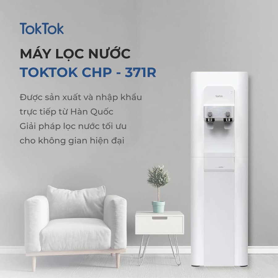 Máy lọc nước Toktok TW-371 là dòng máy lọc nước nóng lạnh tủ đứng cao cấp được nhập khẩu nguyên chiếc từ Hàn Quốc. Đây là giải pháp phù hợp cho gia đình đông người hoặc văn phòng nhờ dung tích bình chứa lớn và công suất lọc ổn định. Tiện nghi với ba chế độ Nóng - Lạnh - Thường "tức thì": Từ pha trà, cà phê đến giải khát nhanh, mọi sở thích được đáp ứng chỉ trong phút mốt! Chất lượng nước tinh khiết chuẩn Hàn Quốc: An tâm tuyệt đối với hệ thống lọc RO, bảo vệ sức khỏe cho những người bạn yêu thương. Toktok TW-371 là dòng máy lọc nước RO tích hợp nóng lạnh, nổi bật với thiết kế phong cách Hàn Quốc hiện đại và hệ thống lõi lọc hiệu suất cao. Thiết kế ưu việt: Nâng tầm không gian làm việc, dịch vụ, và gia đình với thiết kế sang trọng. 👉Nước là nguồn sống, nâng tầm cuộc sống ngay với TokTok TW-371.