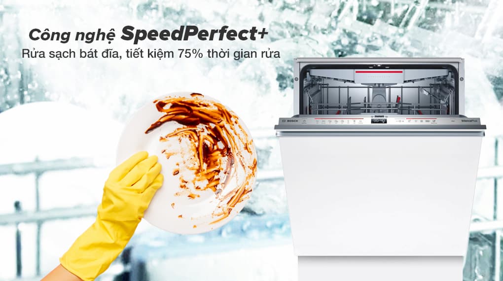 Đặc biệt, bởi được tích hợp công nghệ SpeedPerfect+, qua đó giúp thiết bị vừa làm tốt vai trò rửa sạch các vết bẩn cứng đầu trên bát đĩa, vừa làm giảm tối đa tới 75% thời gian rửa và sấy khô, giúp tiết kiệm thời gian đáng kể cho công việc nội trợ hàng ngày.