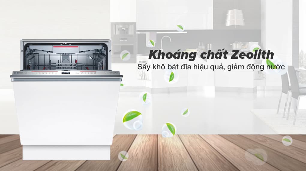 Với chức năng sấy tăng cường, các món đồ sau khi được rửa sạch sẽ được làm khô triệt để trong thời gian ngắn. Ở đây, Bosch SMV6ZCX42E sử dụng khoáng chất Zeolith để hấp thụ hơi ẩm bên trong, cùng với khí nóng sẽ được dùng lại nhiều lần để làm khô bát đĩa, tình trạng đọng hơi nước nhờ đó mà sẽ không xảy ra, cũng giúp vi khuẩn, nấm mốc không thể sinh sôi và phát triển, đảm bảo an toàn cho sức khỏe cả nhà.