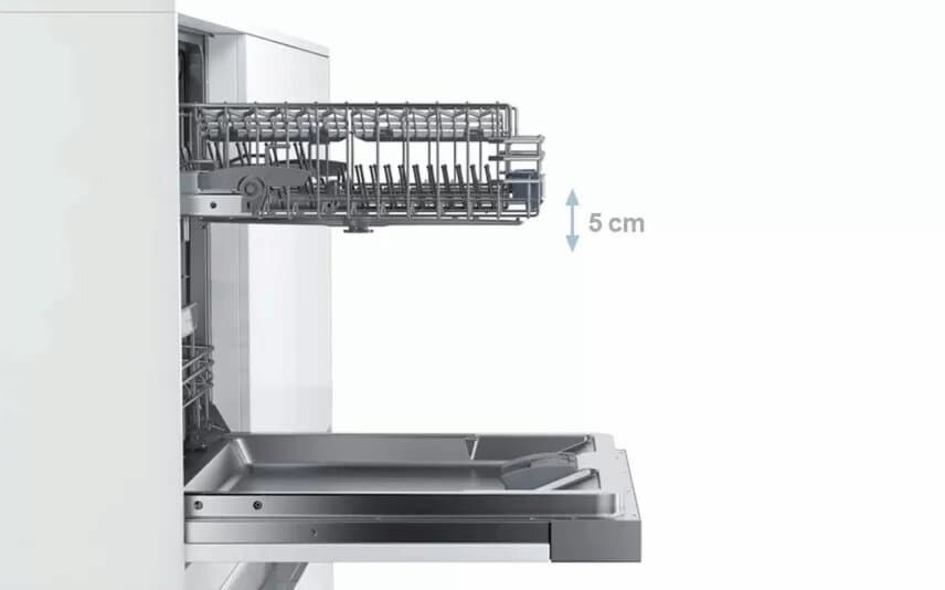 RackMatic 3 vị trí: Cho phép điều chỉnh độ cao của giàn rửa trên cùng lên đến 3 cấp độ, ngay cả khi giàn đã chứa đầy bát đĩa, tạo không gian linh hoạt hơn cho giàn dưới.