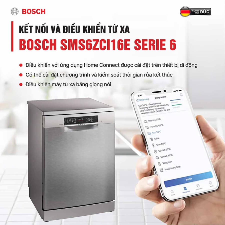 SMS6ZCI16E là một "thiết bị kết nối với Home Connect" , cho phép điều khiển và giám sát thông minh qua ứng dụng điện thoại thông minh.
