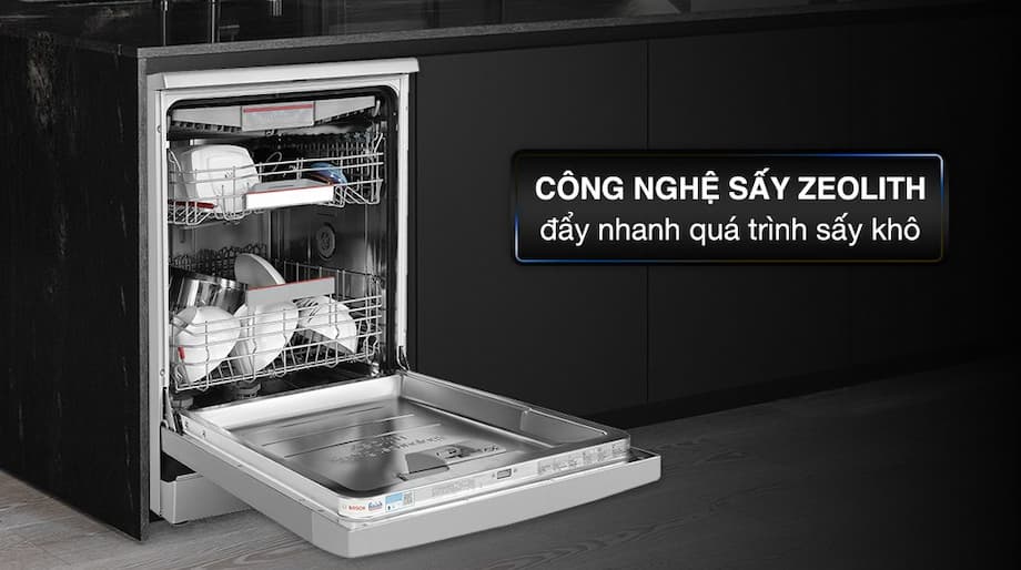 PerfectDry với Zeolith®: Công nghệ sấy bằng hạt Zeolith độc quyền của Bosch, giúp sấy khô hoàn hảo bằng cách hấp thụ hơi ẩm và giải phóng nhiệt. Đảm bảo bát đĩa khô ráo, không đọng nước và tiết kiệm năng lượng.