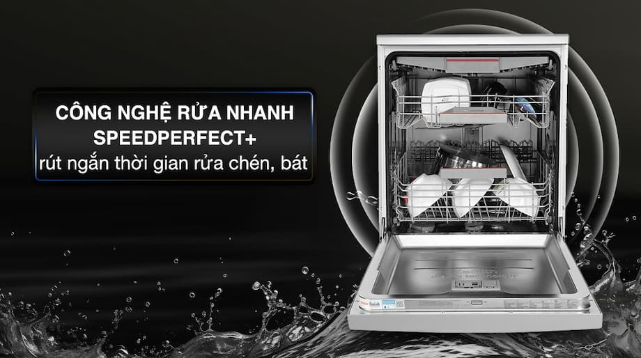Hiệu quả rửa và sấy khô tối ưu: Kết hợp nhiều công nghệ rửa (IntensiveZone, SpeedPerfect+) và đặc biệt là công nghệ sấy Zeolith, đảm bảo bát đĩa sạch bóng và khô ráo hoàn toàn.