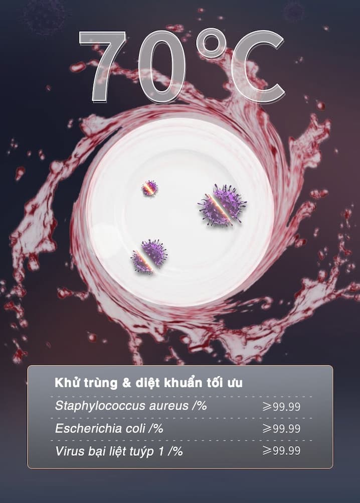 7 Tính năng tăng cường: Bao gồm rửa tăng cường, sấy bảo quản để lưu trữ đồ sau khi rửa luôn khô ráo, chọn vùng rửa linh hoạt, sấy độc lập để sấy khô chuyên biệt, diệt khuẩn UV để tiêu diệt tới 99,99% vi khuẩn, chức năng hẹn giờ trễ để điều chỉnh thời gian khởi động và khóa trẻ em để đảm bảo an toàn khi sử dụng.