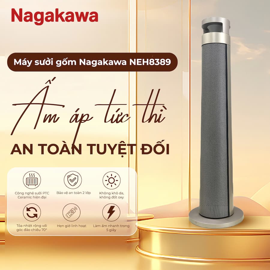 Ngoài ra, máy sưởi còn sở hữu thiết kế hiện đại, sang trọng, góp phần tô điểm cho không gian sống của bạn. Còn chần chờ gì nữa, hãy rinh ngay một chiếc Nagakawa NEH8389 về nhà để tận hưởng mùa đông ấm áp và an toàn nhé! Mùa đông đến, gió mùa đông Bắc khiến không gian sống trở nên lạnh lẽo, ảnh hưởng không nhỏ đến sức khỏe, đặc biệt là với người già và trẻ nhỏ. Chính vì vậy, việc lựa chọn một chiếc máy sưởi ấm vừa an toàn, vừa hiệu quả là điều vô cùng quan trọng. Và máy sưởi gốm Nagakawa NEH8389 chính là giải pháp hoàn hảo mà bạn đang tìm kiếm!