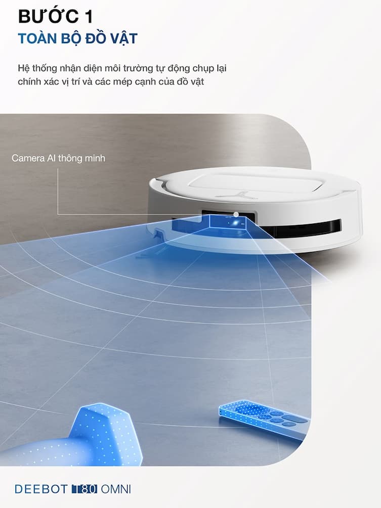– Trợ lý ảo AI: YIKO-GPT 2.0 – Công nghệ điều hướng, tránh vật cản: AIVI 3D 3.0 – Công nghệ hiển thị bản đồ: Hybrid 2D/3D – Lực hút tối đa: 18.000Pa – Công suất lau tối đa: 3.700Pa – Công nghệ lau nhà: OZMO ROLLER – Chống rối: ZeroTangle 3.0 – Làm sạch cạnh: TruEdge 2.0 – Khả năng vượt vật cản: 20mm – Tự động nâng con lăn khi gặp thảm: 10mm – Chiều cao DEEBOT: 98mm