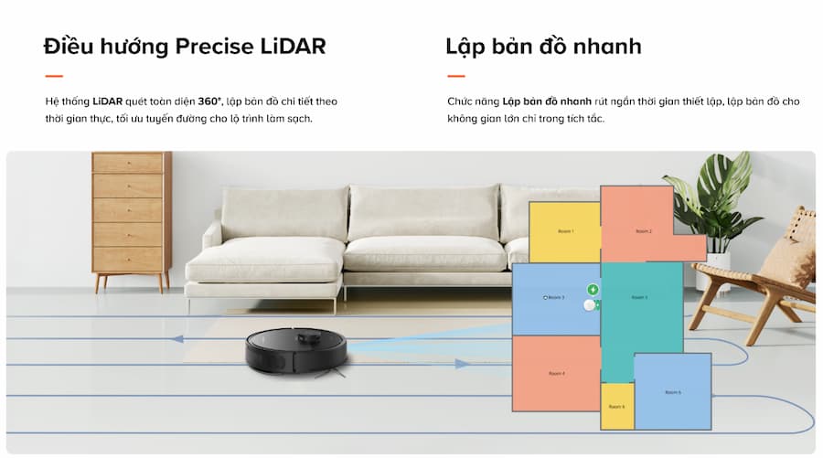 Công nghệ điều hướng Precise LiDAR quét toàn diện 360°, lập bản đồ chi tiết theo thời gian thực