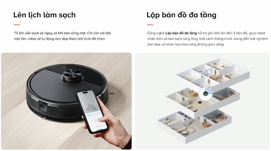 Tính năng lập bản đồ đa tầng hỗ trợ lên đến 3 bản đồ, tối ưu hóa trải nghiệm làm sạch.