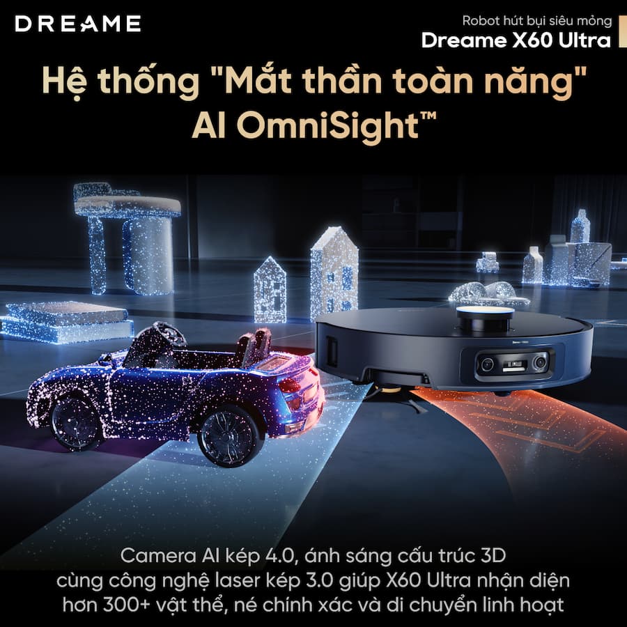 AI OmniSight™: Mắt kép nhận diện vật thể milimet, tránh dây điện, đồ chơi trẻ em cực nhạy.