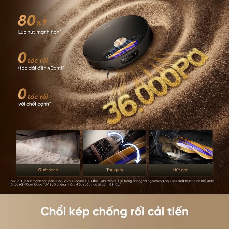 1. Lực hút "Vô đối" 36.000 Pa ở robot hút bụi lau sàn Dreame X60 Ultra