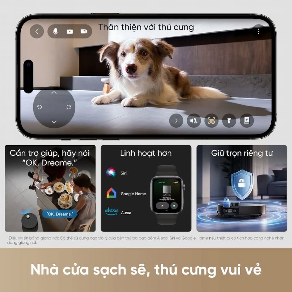 Trợ lý giọng nói tích hợp, điều khiển thông qua bên thứ ba.