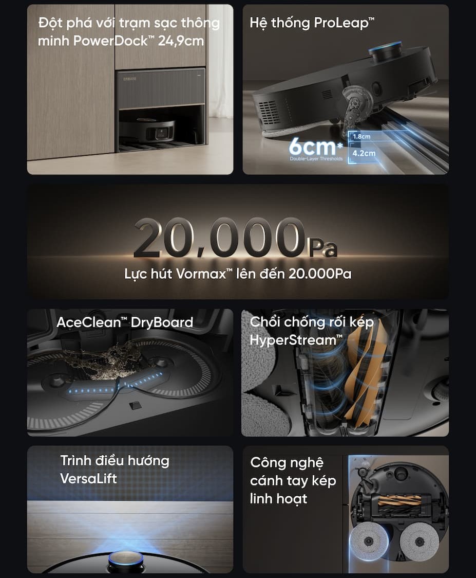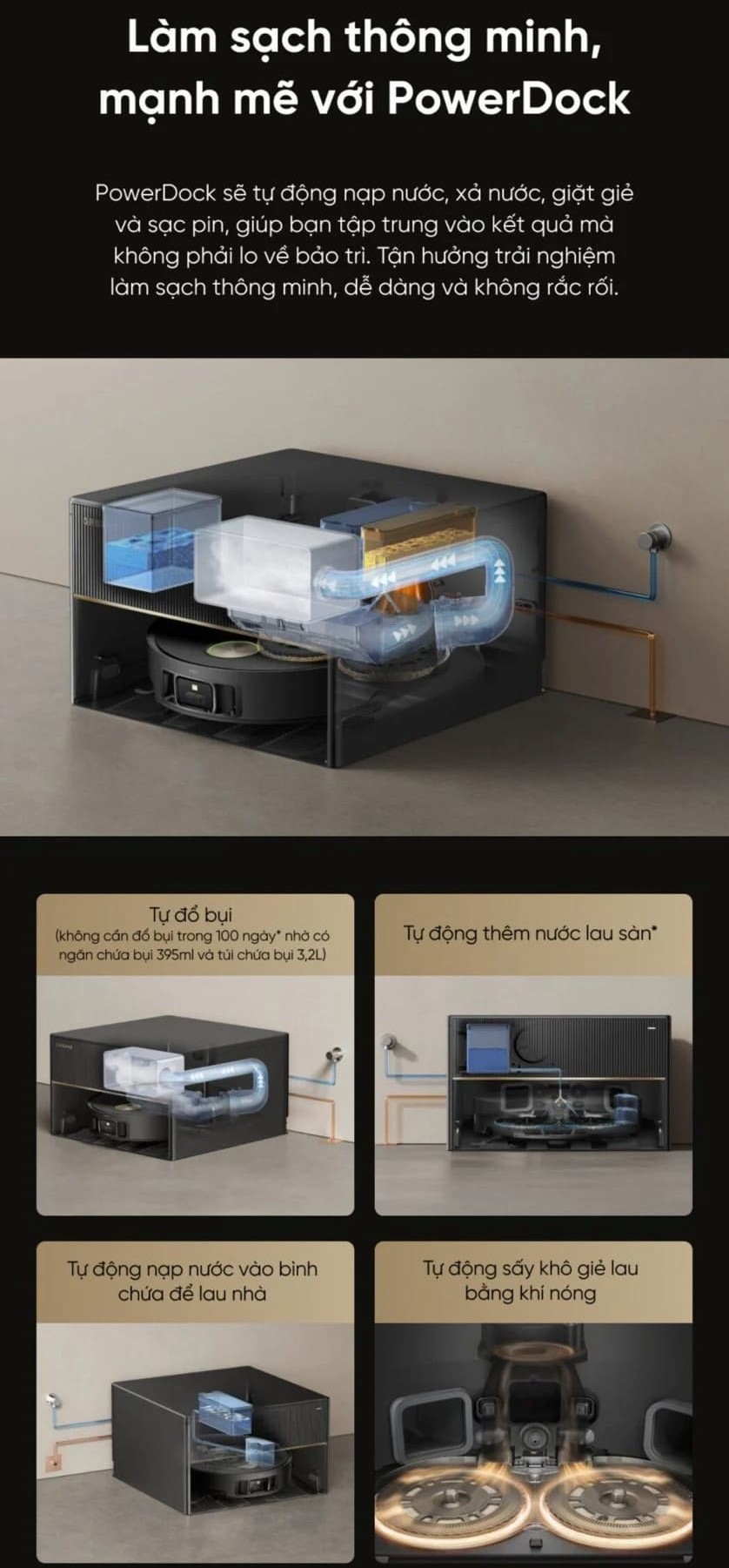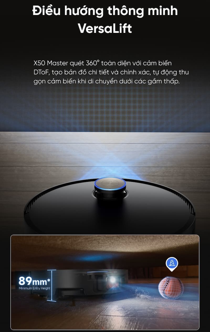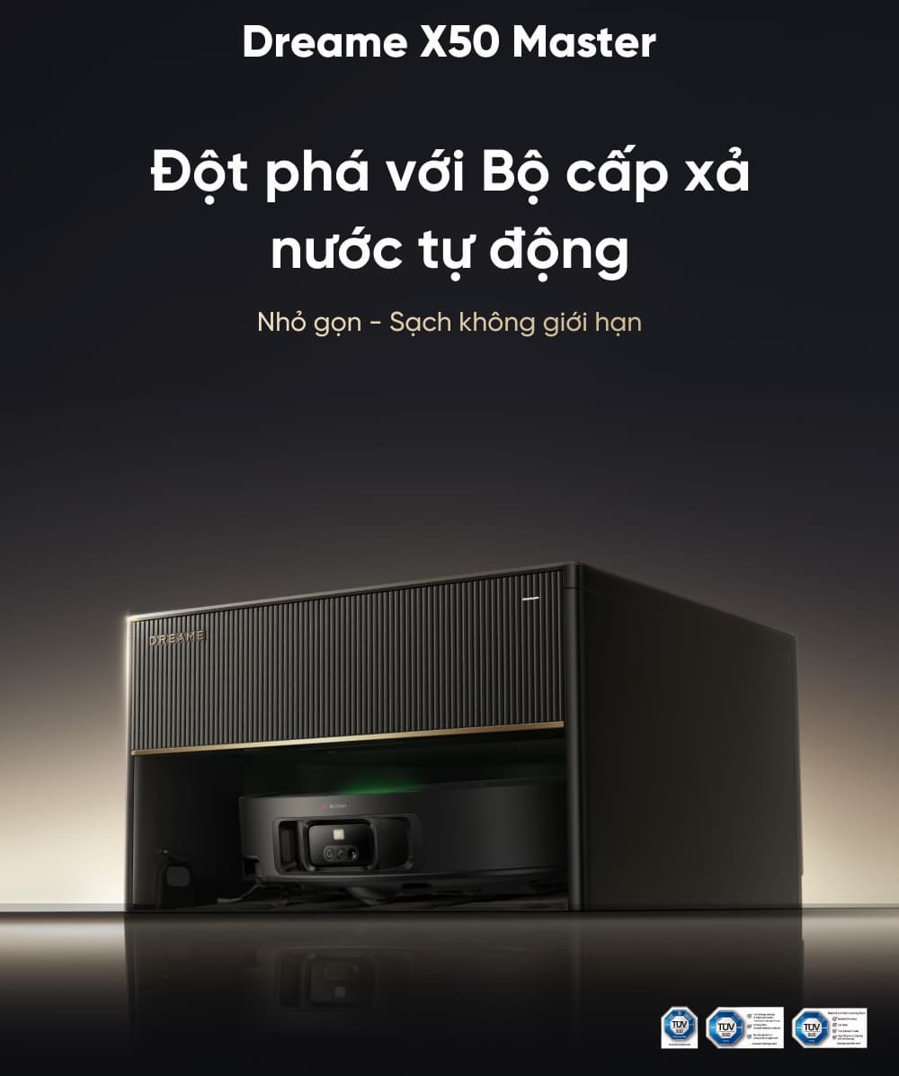 Sự xuất hiện của Robot hút bụi lau sàn Dreame X50 Master không chỉ là một bước tiến trong công nghệ làm sạch, mà còn là lời giải cho bài toán bận rộn của cuộc sống hiện đại. Thay vì phải lo lắng về việc dọn dẹp từng ngày, bạn có thể tận dụng sự thông minh của robot này để tự động hóa công việc nhà cửa. Với thiết kế tinh tế, khả năng hoạt động ổn định và công nghệ hiện đại, Dreame X50 Master không chỉ giúp làm sạch mà còn đem đến một trải nghiệm sống tiện nghi và sang trọng hơn. Robot hút bụi lau nhà Dreame X50 Master được trang bị những công nghệ đột phá, mang đến trải nghiệm làm sạch toàn diện. Với trạm sạc thông minh PowerDock™, hệ thống hút mạnh mẽ Vormax™ 20.000Pa, chổi kép chống rối HyperStream™, cùng công nghệ điều hướng VersaLift, thiết bị này không chỉ tối ưu hóa hiệu suất làm sạch mà còn định nghĩa lại sự tiện nghi trong ngôi nhà hiện đại.