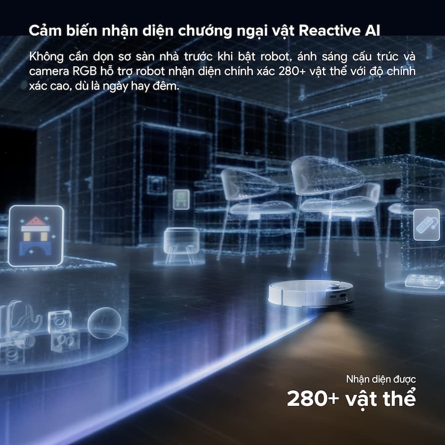 Nhận diện vật thể AI: Sử dụng Reactive AI để nhận diện và tránh né hơn 108 loại vật thể khác nhau, hạn chế tình trạng mắc kẹt.