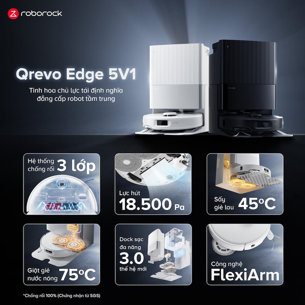 Robot hút bụi lau sàn Roborock Qrevo Edge 5V1 với hiệu suất làm sạch vượt trội