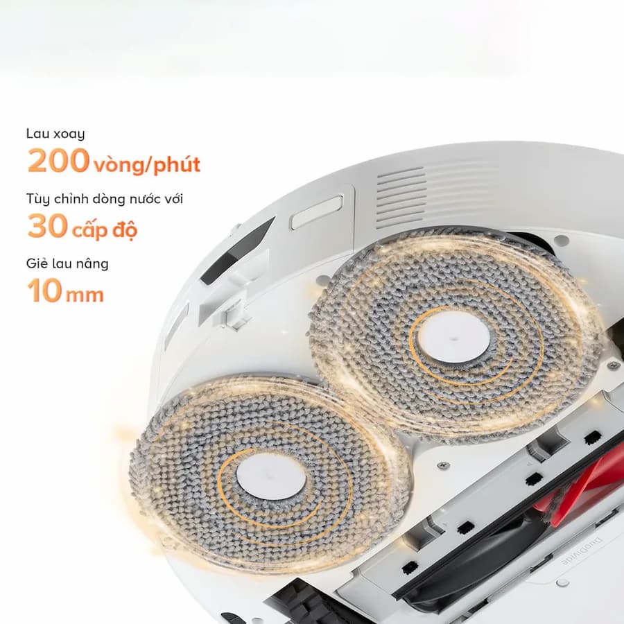 Hệ thống giẻ lau xoay kép của Roborock QRevo Edge 5V1 quay liên tục với áp lực ổn định, giúp loại bỏ hiệu quả các vết bẩn cứng đầu. Kết hợp với 30 cấp độ tùy chỉnh dòng nước, robot dễ dàng điều chỉnh độ ẩm phù hợp cho từng loại sàn, đảm bảo làm sạch tối ưu mà không gây hư hại bề mặt.