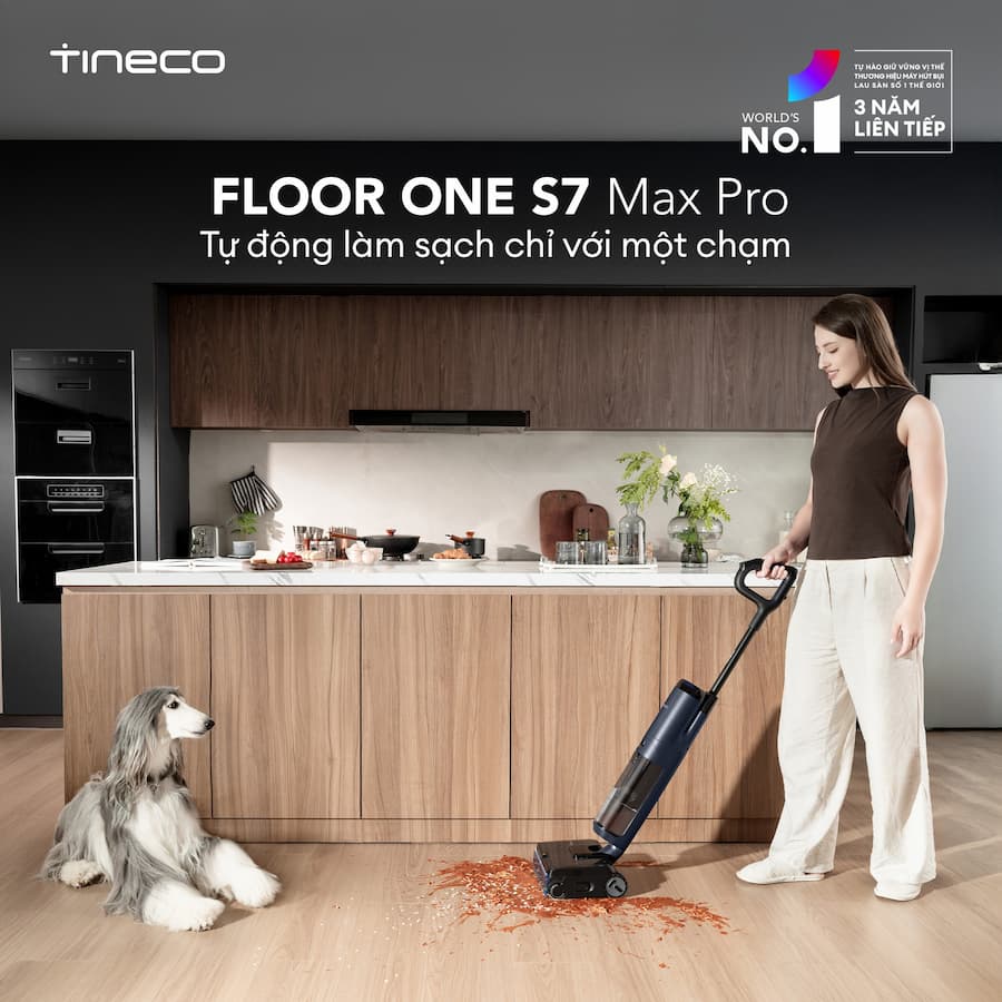Chào bạn! Nếu bạn đang tìm kiếm "ông vua" trong làng máy hút bụi lau sàn thì Tineco Floor One S7 Max Pro chính là cái tên không thể bỏ qua. Đây không chỉ là một chiếc máy hút bụi đơn thuần mà là một "trợ lý" dọn dẹp cực kỳ thông minh và mạnh mẽ. Loạt tính năng làm sạch vượt trội như: tia nước áp suất cao HydroBurst, lưỡi gạt AI StreakFree, bánh xe trợ lực đẩy - kéo,... cùng hội tụ tại Tineco S7 MAx Pro! Với thiết kế ba mặt cạnh, Tineco S7 Max Pro dễ dàng tiếp cận và làm sạch sâu khu vực sát mép tường, đảm bảo không bỏ sót bất cứ ngóc ngách nào trong nhà bạn. Lực hút mạnh mẽ 22.000Pa, cùng hệ thống tự động làm sạch FlashDry tích hợp tính năng giặt bằng nước nóng và sấy khô nhanh, máy luôn được duy trì vệ sinh tối ưu và sẵn sàng cho lần sử dụng kế tiếp. Floor One S7 Max Pro hứa hẹn mang đến trải nghiệm dọn nhà nhẹ tênh và đầy thư giãn!