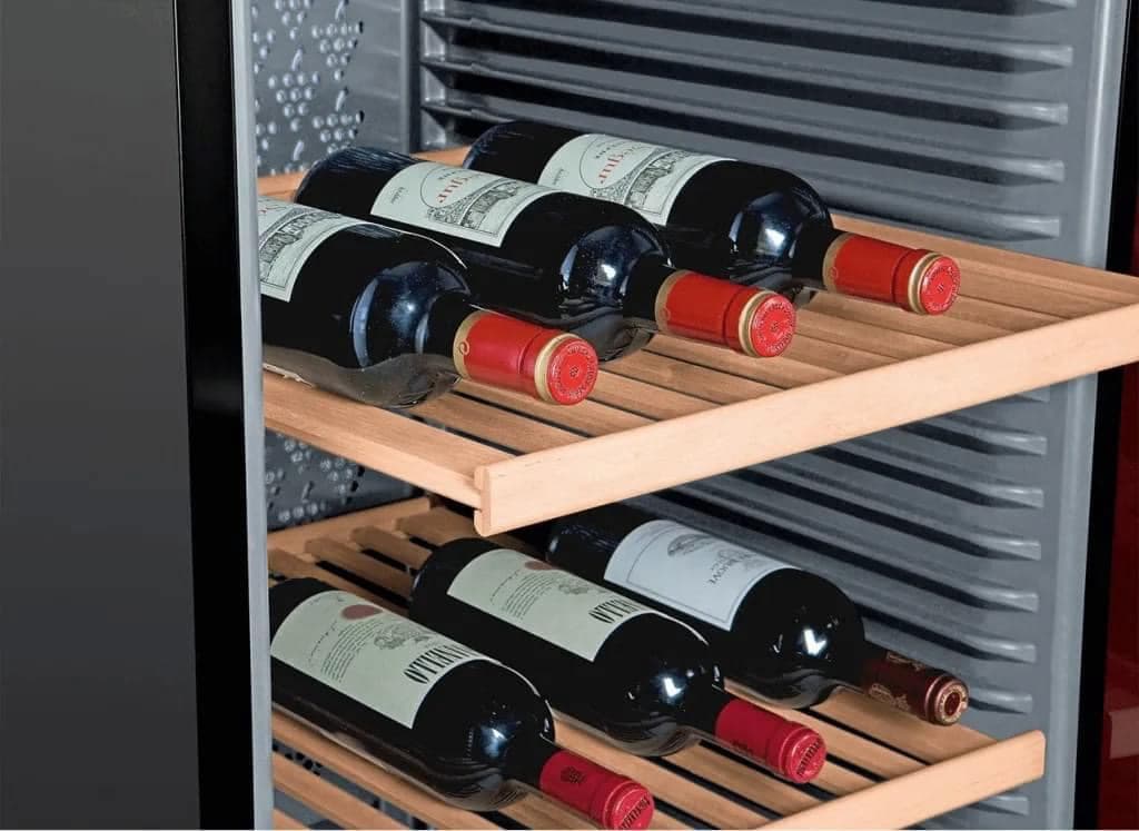 Mặt khác, để tạo độ linh hoạt hơn cho việc sử dụng, cửa tủ được trang bị bản lề có thể đảo ngược cho phép mở từ bất cứ vị trí nào. Các kệ gỗ bên trong được giảm rung nhằm ngăn sự biến đổi về mùi vị của rượu bởi các hương liệu hóa học khi có tác động mạnh, tăng hiệu quả bảo quản. Đặc biệt, nếu tủ mở quá 60 giây, chuông được tích hợp sẵn ở cửa sẽ ngay lập tức phát âm thanh cảnh báo, tránh các tác động từ môi trường bên ngoài vào tủ làm thay đổi các thông số cho việc bảo quản bên trong.